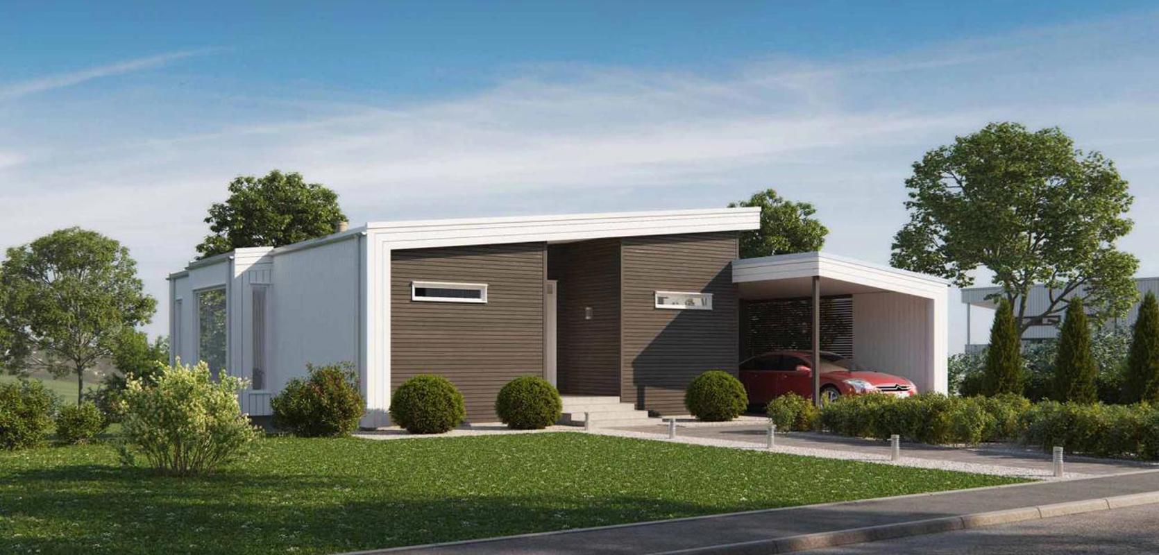 Mesterhus Signatur 306 er designet med stramme og rene linjer som gir det et moderne uttrykk. Et stort panoramavindu i hjørnet av stuen gir mye lys inn i fellesrommet og flott utsikt. Hovedboligen har tilsammen tre soverom, hvorav ett på samme plan som de andre hovedfunksjonene, noe som gjør dette til en  bolig godt tilpasset alle livsfaser.
