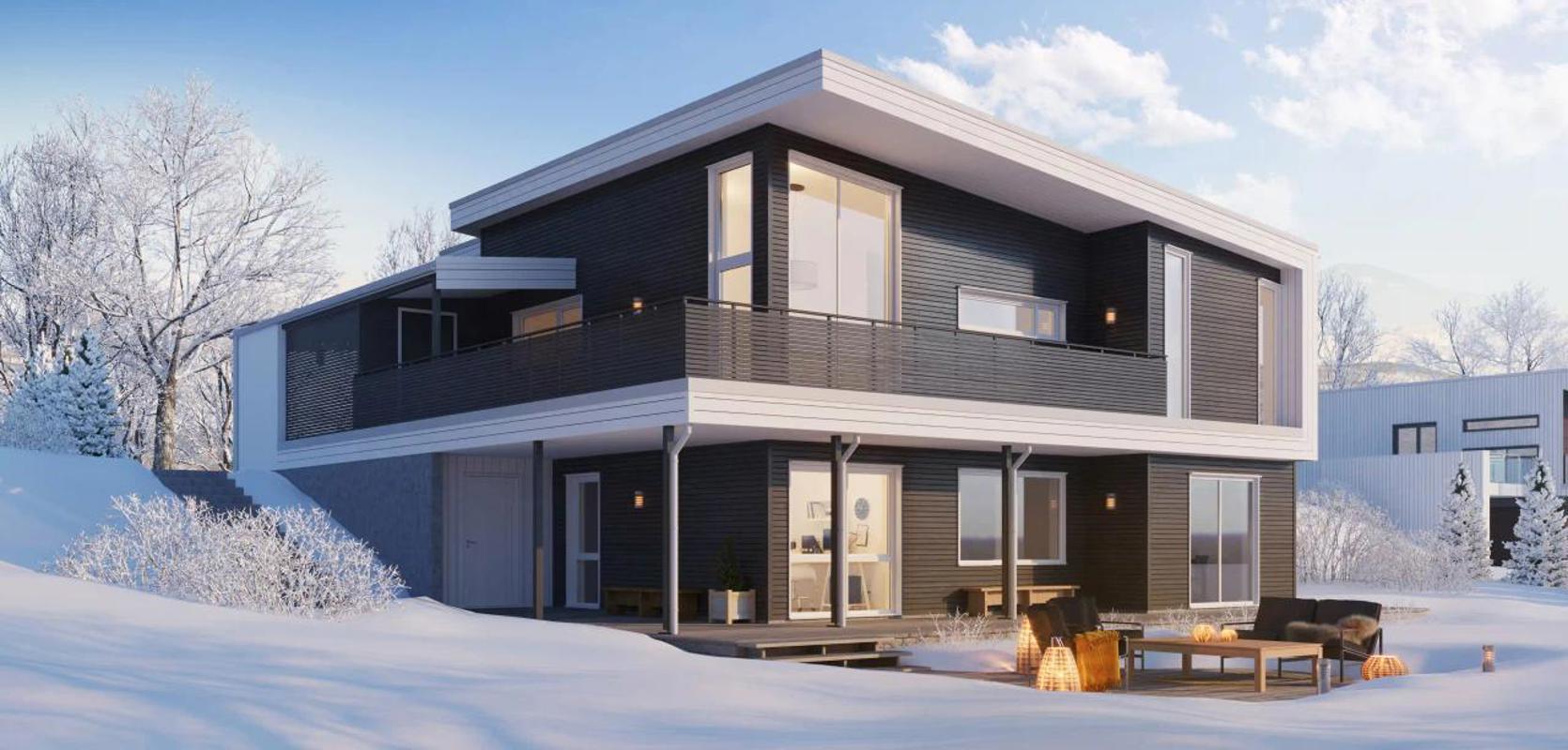 Mesterhus Signatur 306 er designet med stramme og rene linjer som gir det et moderne uttrykk. Et stort panoramavindu i hjørnet av stuen gir mye lys inn i fellesrommet og flott utsikt. Hovedboligen har tilsammen tre soverom, hvorav ett på samme plan som de andre hovedfunksjonene, noe som gjør dette til en  bolig godt tilpasset alle livsfaser.